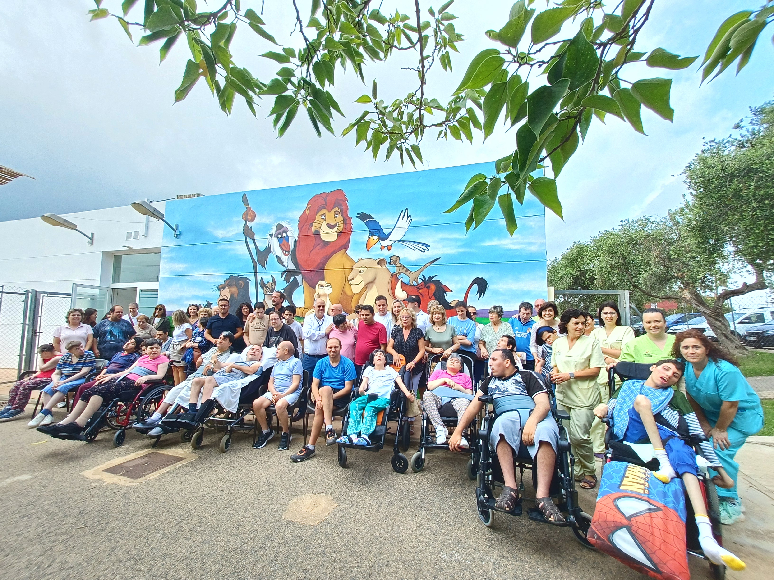 La Residència i Centre de Dia El Collet, especialitzada en l'atenció de persones amb discapacitat, ha inaugurat avui un nou espai exterior, destinat a millorar la qualitat de vida dels seus residents. Aquest espai ha estat decorat amb un gran mural, creat per l'artista Chile, que representa la temàtica de la coneguda pel·lícula 'El Rei Lleó'. Juntament amb el mural, s'ha instal·lat una pèrgola que proporcionarà una zona d'ombra, fent que l'espai siga més acollidor i funcional.