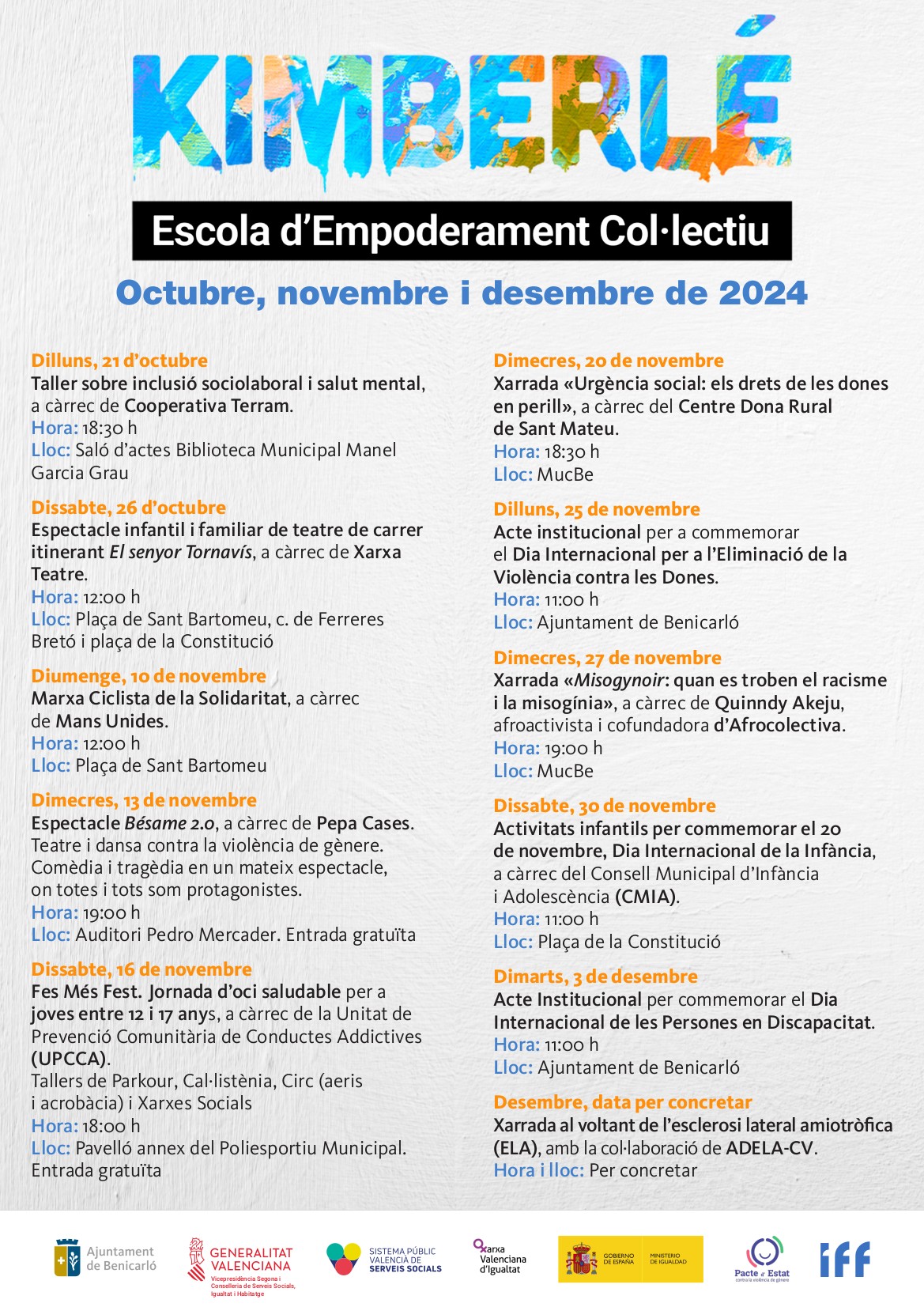 L'alcalde de Benicarló, Juanma Cerdá, ha donat a conéixer avui la programació del projecte 'Kimberlé' per a l'últim trimestre de l'any, on la igualtat de tracte i la lluita contra totes les formes de discriminació són el principal fil conductor.