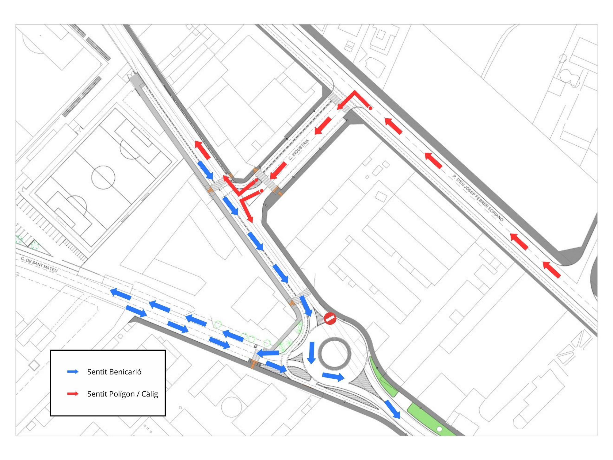 Concretament, els vehicles que vulguen accedir al Polígon Industrial El Collet o a Càlig hauran de circular pel passeig de Febrer Soriano en direcció a l'estació de ferrocarril i girar a l'esquerra pel carrer d'Indústria, per incorporar-se després a la CV-135