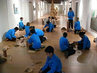 L'artista Álvaro Tamarit, autor de la mostra “Reconstruccions”, que s'exposa al Mucbe, ha fet de guia de luxe per als escolars que han participat en els tallers didàctics que ha programat el centre amb motiu de l'exposició.
