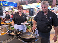 El taller ha comenzado esta mañana con la participación de los restaurantes El Cortijo y El Palleter, que han cocinado en directo un arroz con galeras y alcachofas y un suquet de pescado con patatas. Todo, con productos comprados en el mismo Mercado. La expectación ha sido considerable y numerosos clientes se han acercado a descubrir los secretos de la cocina del pescado.